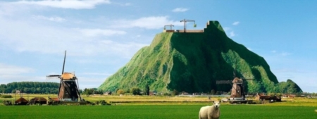 Die Berg Komt Er (The Mountain Comes), the Netherlands: 7.7 billion cubic metres of sand would be required to build this mountain to a height of two kilometres, presumably to park an ark should a flood necessitate it. Feasibility studies have shown that the mountain would probably have to be constructed as a hollow building because of the extensive impact of its weight upon surrounding ground levels. The proposal was mooted in 2011 by Thijs Zonneveld, a journalist and cyclist, and the architecture firm Hoffers & Kruger has created renderings. http://diebergkomter.nl